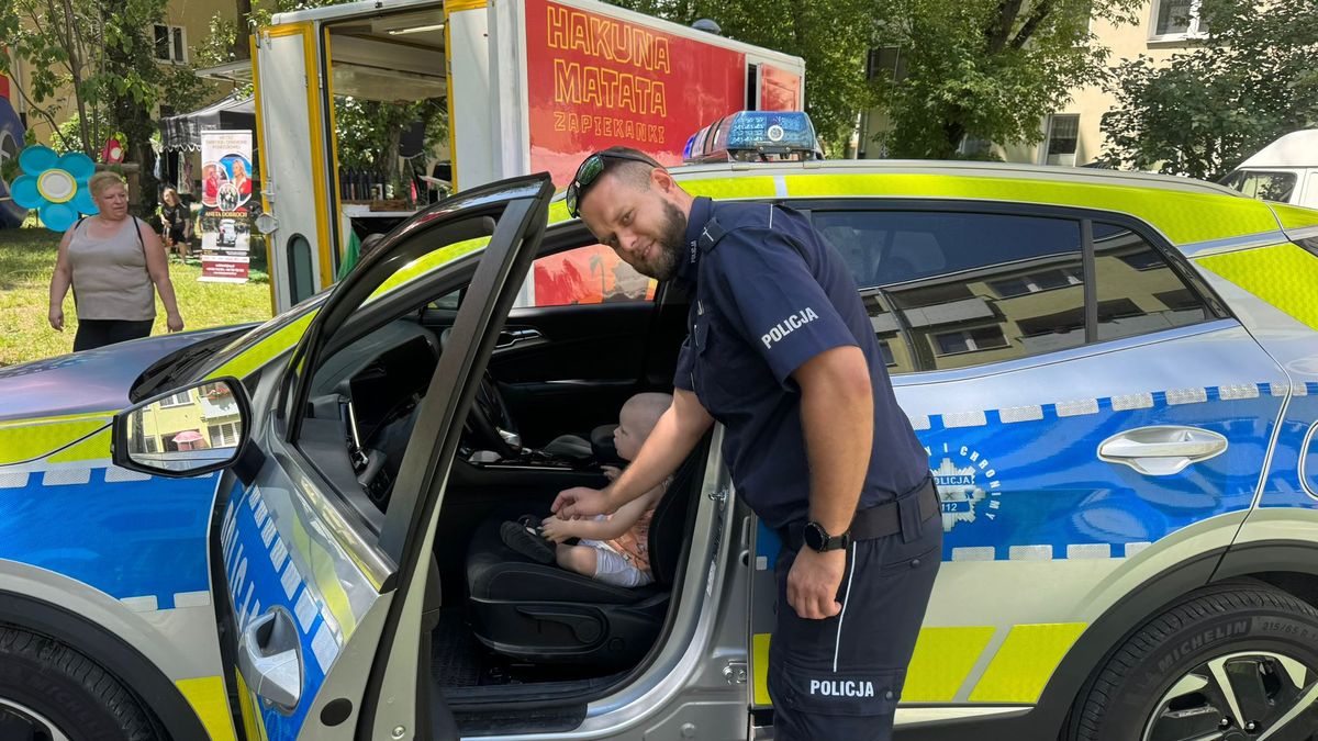 Podczas wydarzenia zaprezentowany został policyjny radiowóz, który dzieci mogły dokładnie obejrzeć od środka. Policjant pokazał także sprzęt, którym funkcjonariusze posługują się na co dzień w służbie.