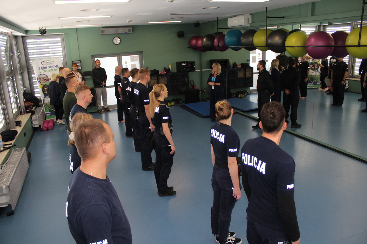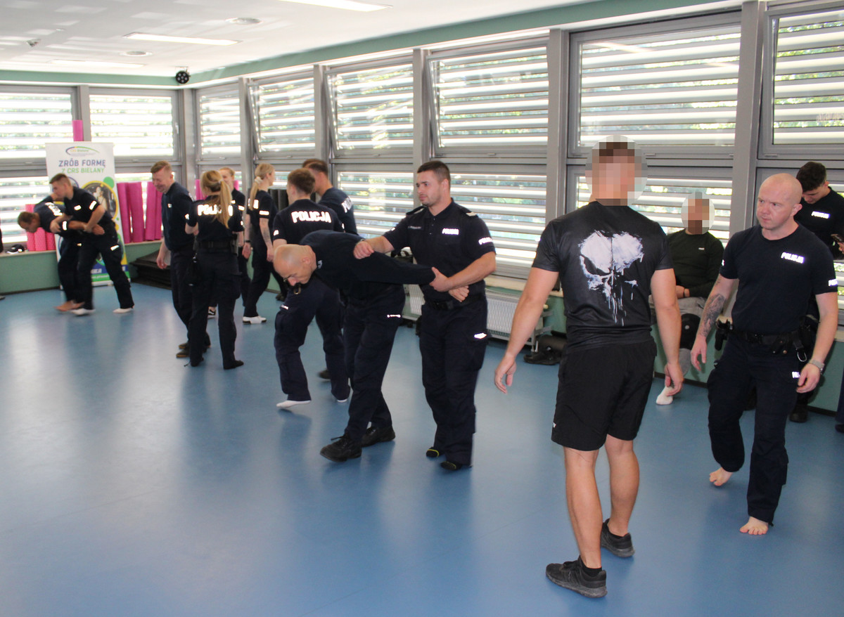 Szkolenie odbywało się w Centrum Rekreacyjno-Sportowym przy ulicy Lindego na Bielanach. Dzięki uprzejmości dyrektor placówki, pani Anny Szymczak- Gałkowskiej, policjanci mieli możliwość korzystania z sali gimnastycznej i zaplecza obiektu. To efekt doskonałej współpracy CRS Bielany z policją, która regularnie wspiera inicjatywy szkoleniowe i nigdy nie odmawia funkcjonariuszom miejsca do treningów.