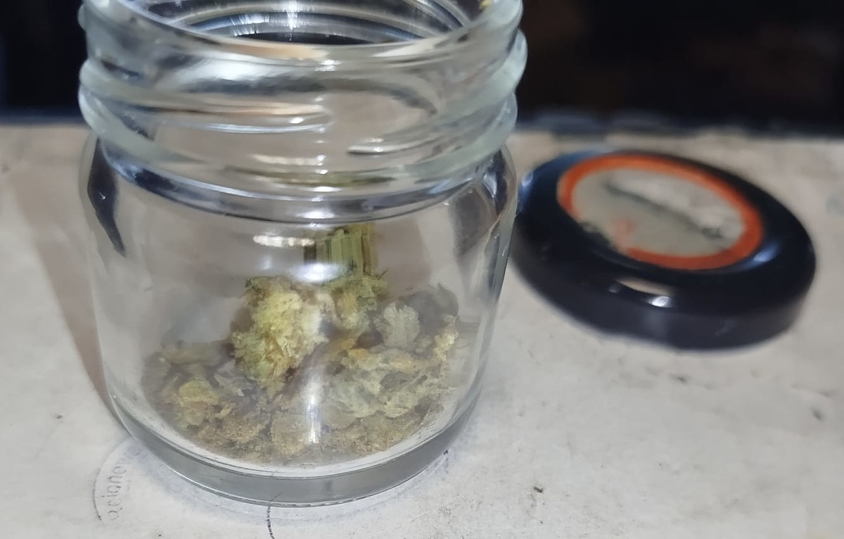 Pod fotelem kierowcy funkcjonariusze znaleźli słoiczek z suszem roślinnym. Podejrzewając, że może to być środek odurzający, zabezpieczyli substancję i zatrzymali 43-latka.