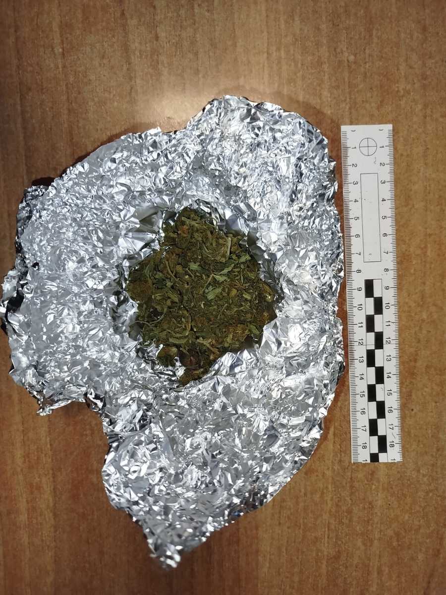 W trakcie przeszukania mieszkania w pokoju, na szafce, funkcjonariusze ujawnili zawiniątko folii aluminiowej, w którym znajdował się susz roślinny. Mając uzasadnione podejrzenie, że jest to środek odurzający, policjanci zabezpieczyli substancję i poddali ją badaniom, które potwierdziły, że jest to marihuana.