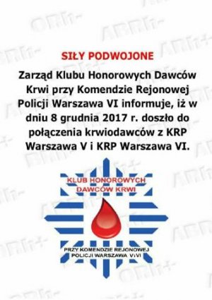 Od kilku lat przy Komendy Rejonowej Policji Warszawa VI działało stowarzyszenie Klubu Honorowych Dawców Krwi. Idea ta powstała z potrzeby serca i chęci niesienia pomocy innym. Wśród członków zarządu pojawił się pomysł połączenia krwiodawców z północnopraskiej komendy z bielańskimi krwiodawcami. Po akceptacji pomysłu przez Komendanta Rejonowego Policji Warszawa V, w dniu 8 grudnia 2017 roku doszło do połączenia krwiodawców z KRP Warszawa V i KRP Warszawa VI.