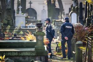 Okres Wszystkich Świętych to czas zadumy i pamięci o bliskich, ale niestety także czas, w którym dochodzi do przestępstw i wykroczeń na terenach cmentarzy. Policjanci apelują o zachowanie ostrożności i czujność, szczególnie wobec osób, które nie szanując miejsca spoczynku, dopuszczają się kradzieży zniczy, kwiatów, elementów nagrobków, a także rzeczy osobistych osób odwiedzających groby.